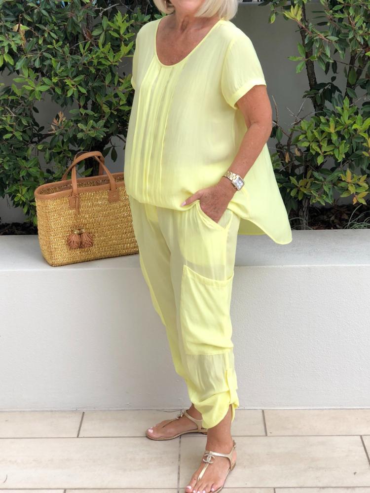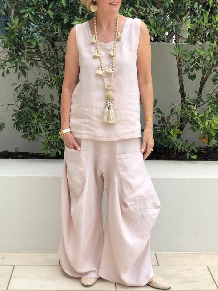 Solid Color Vest Cotton Linen Casual Wide Leg Pants Set