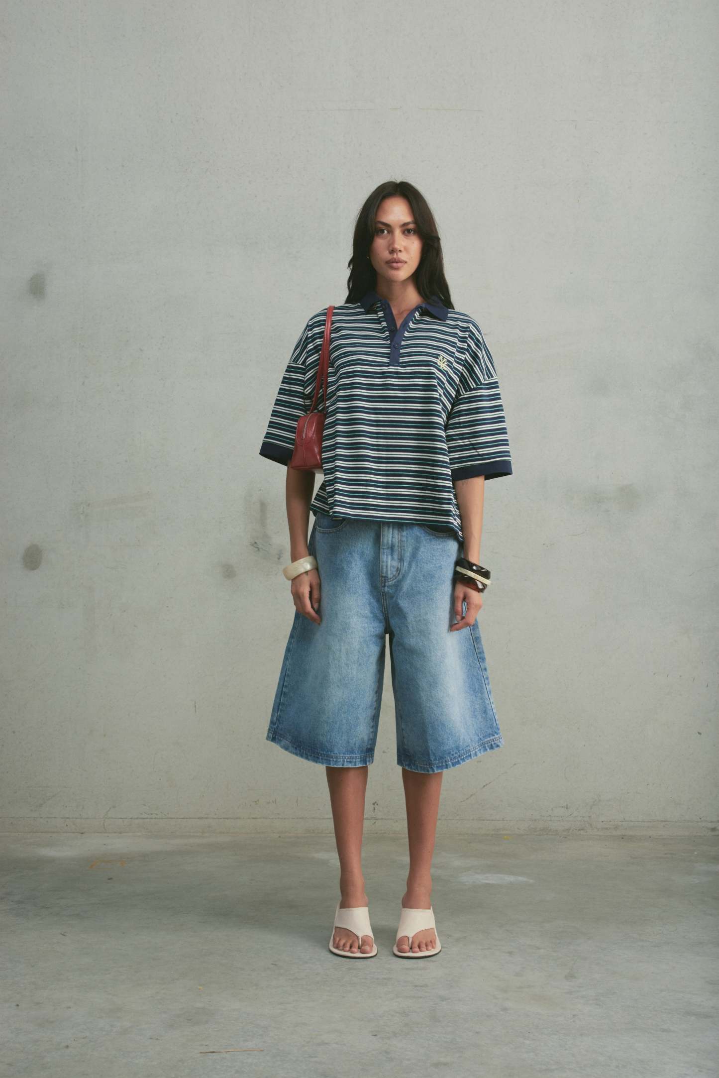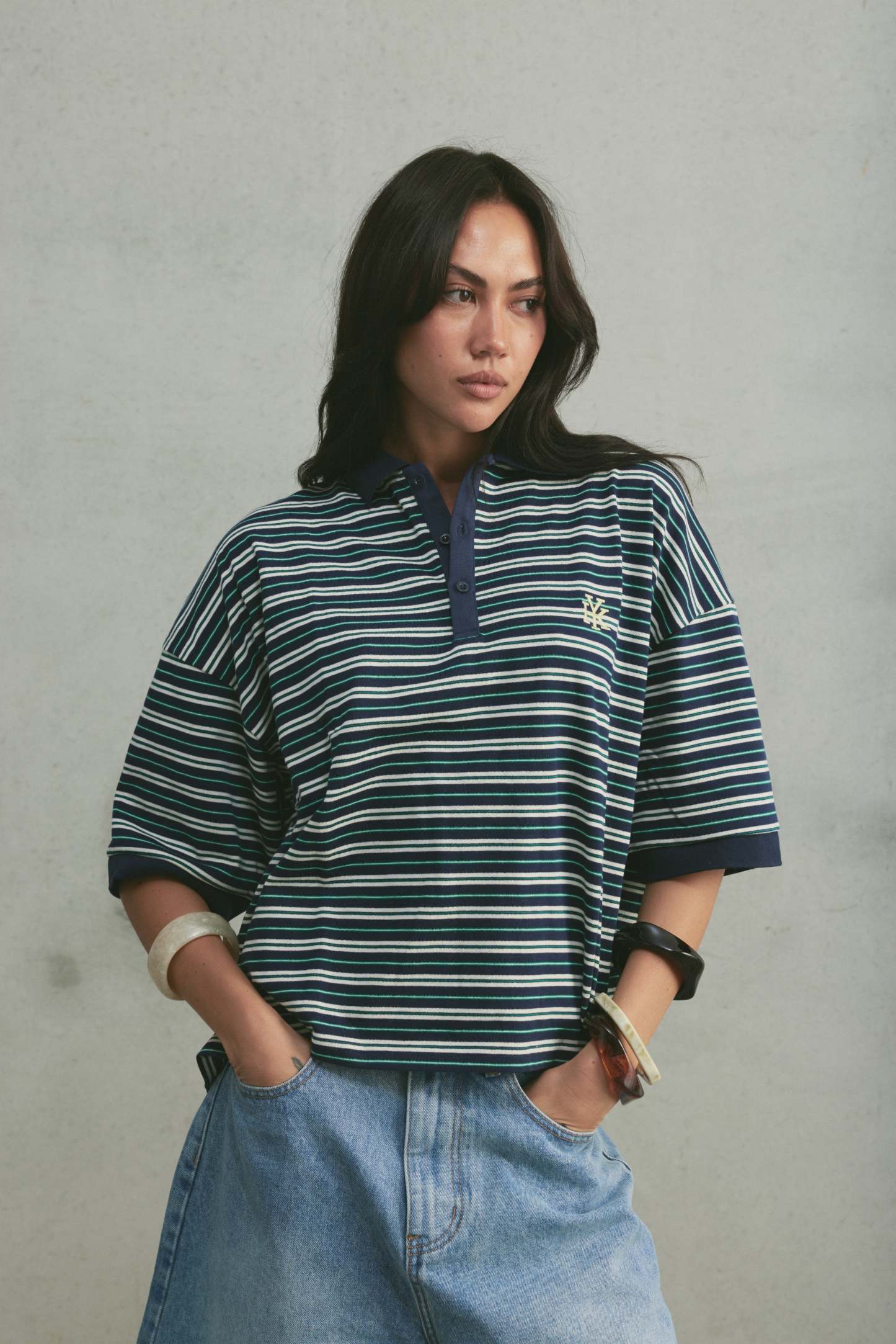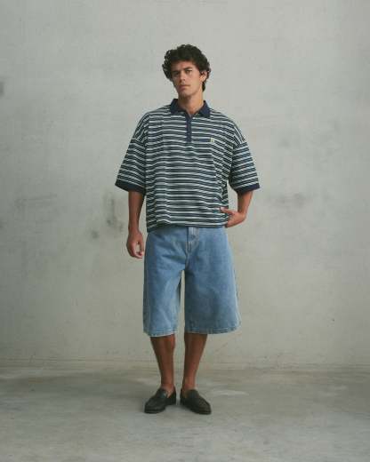 The Boxy Polo is a slightly cropped, boxy-fit striped polo, designed with a three-button front placket. It’s finished with subtle embroidered detailing on the chest and at the back of the neck.