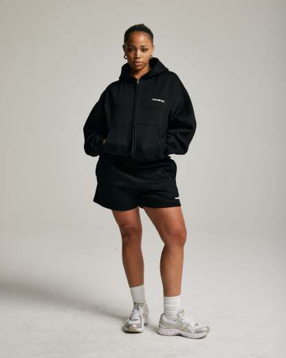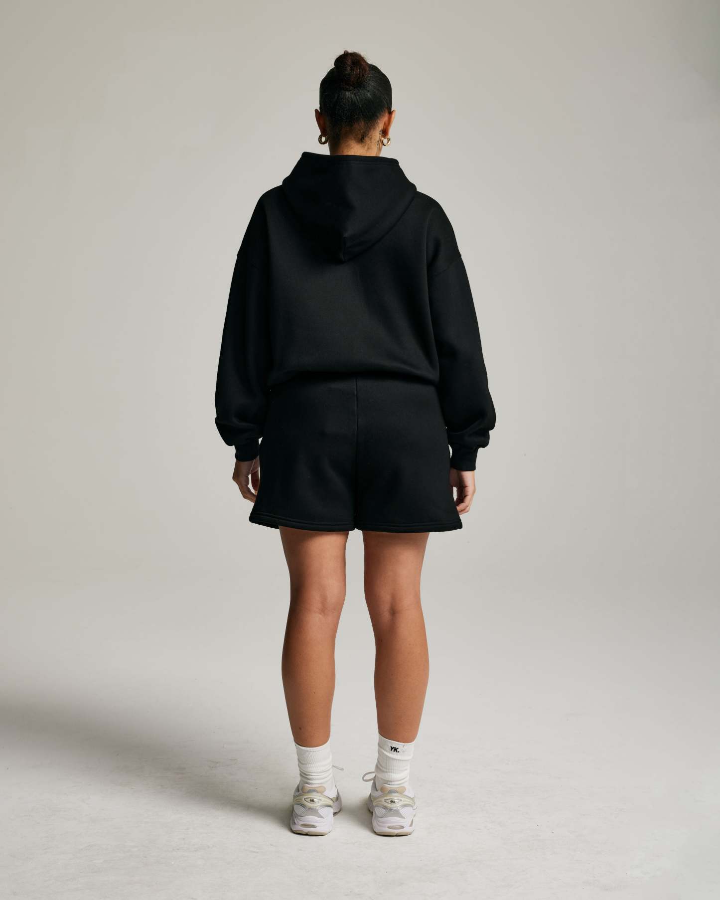 The Core Short Shorts features a boxy fit. It includes a subtle embroidered lower leg logo and side pockets, crafted from soft mid-weight fabric for everyday comfort.