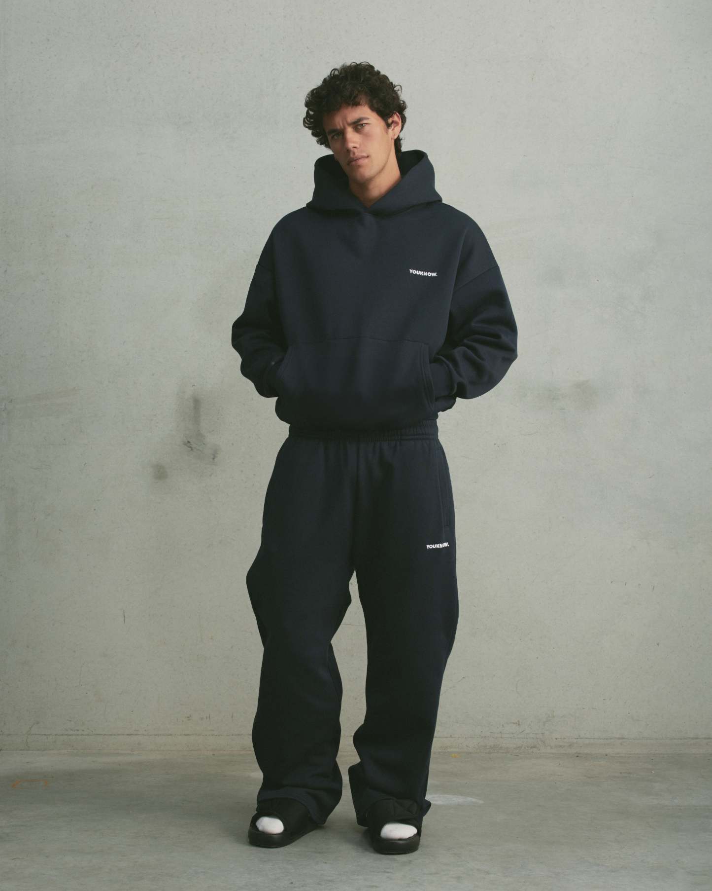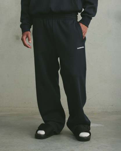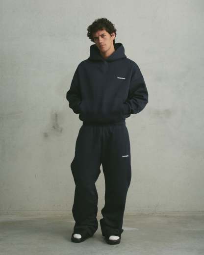 The Core Wide Leg Sweatpants feature a relaxed wide-leg silhouette with side pockets and a subtle embroidered logo, designed for effortless, everyday wear.