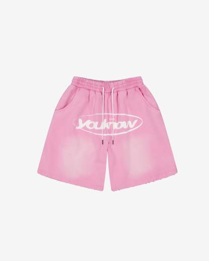 Distressed Logo Shorts | Washed Pink