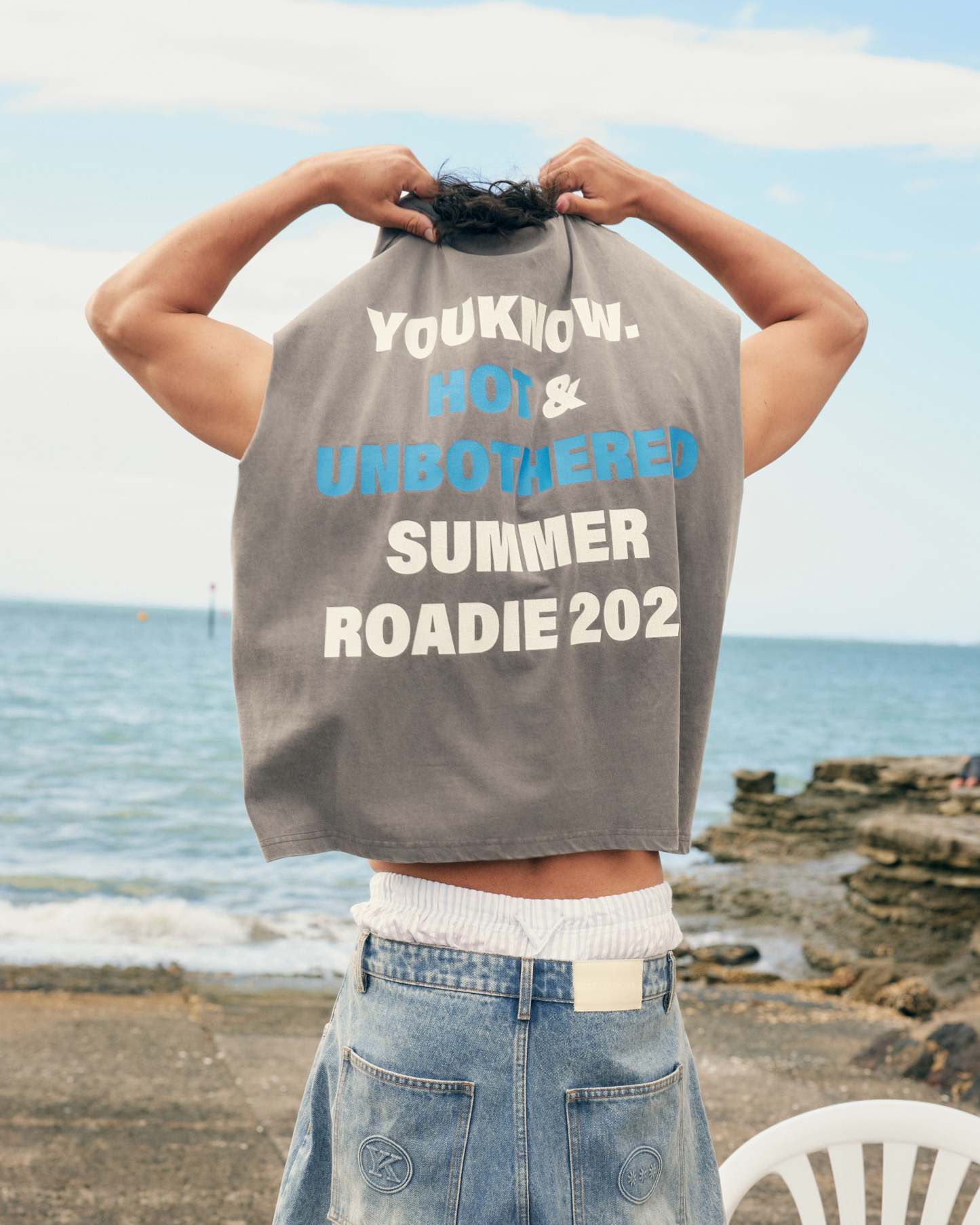 The Hot & Unbothered Distressed Tank features a boxy, oversized fit with a distressed finish. Crafted from soft, vintage-washed fabric for a relaxed, worn-in look. Finished with a small front print and a large graphic across the back.