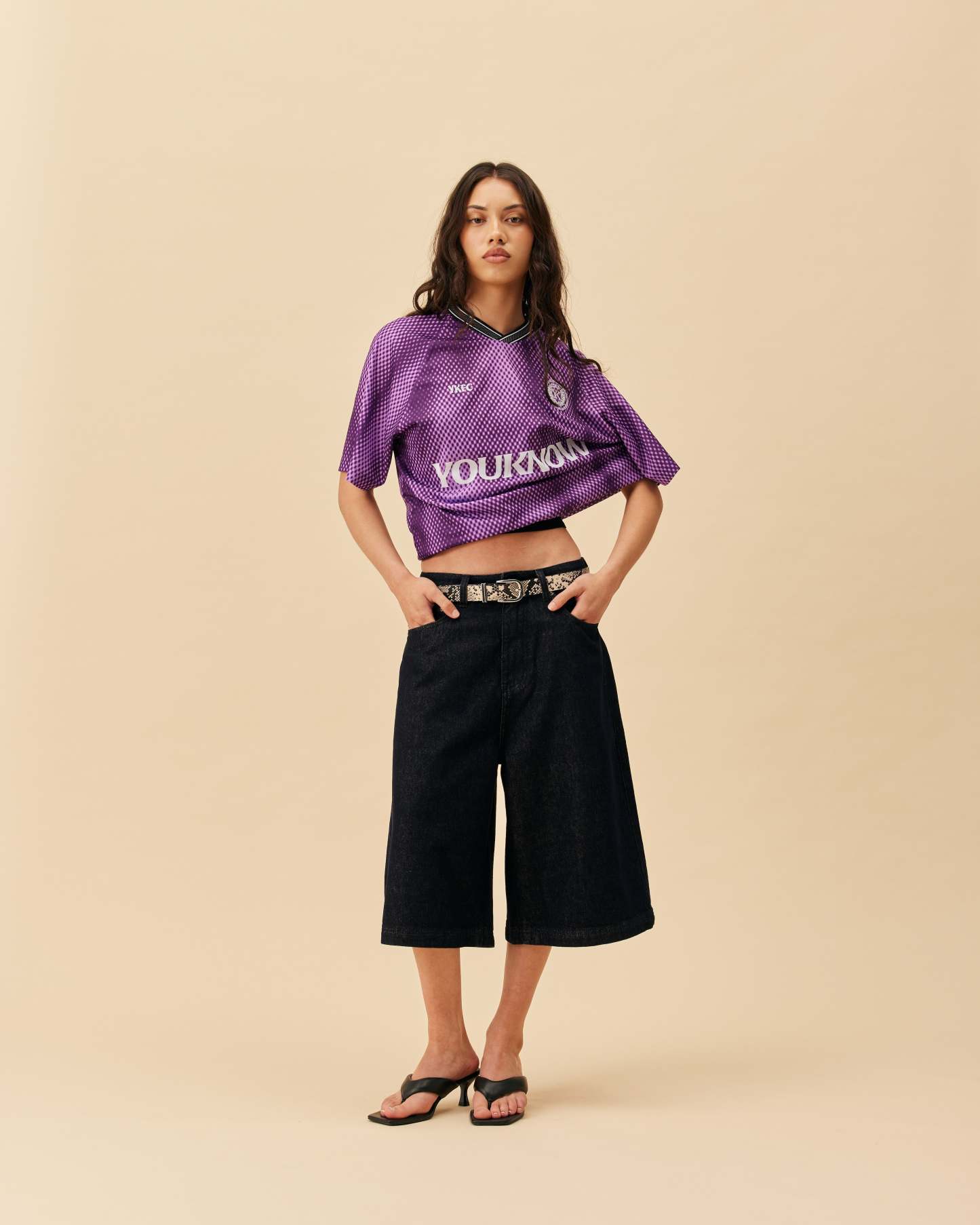 - Oversized wide-leg fit
