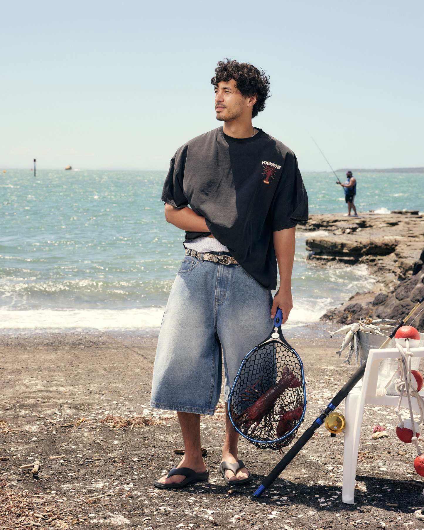 - Oversized wide-leg fit