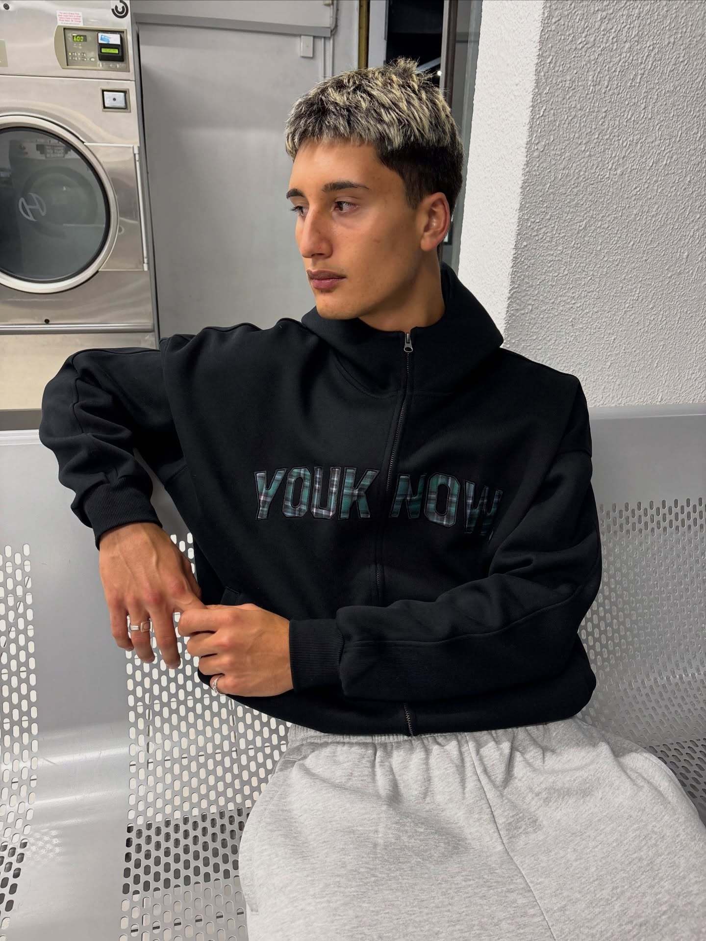 The Offset Zip-Up Hoodie is a full-zip, boxy-fit hoodie with a contrast print panel across one side for an asymmetric, split design. Finished with subtle branding details.