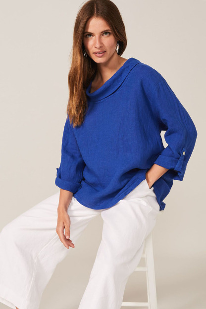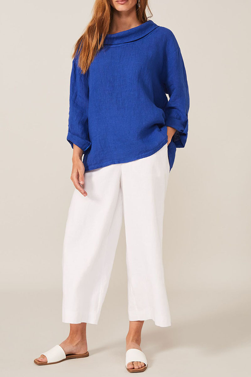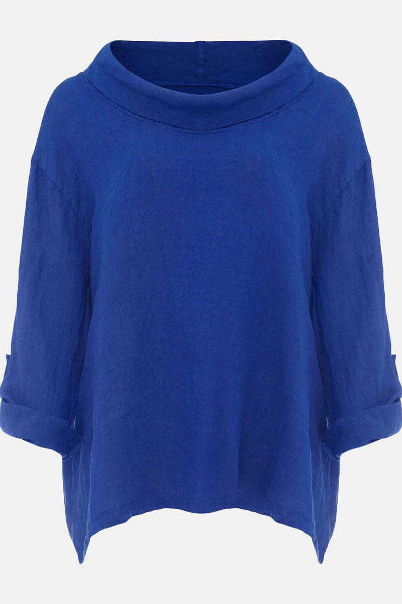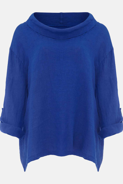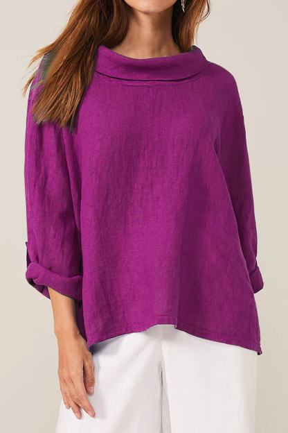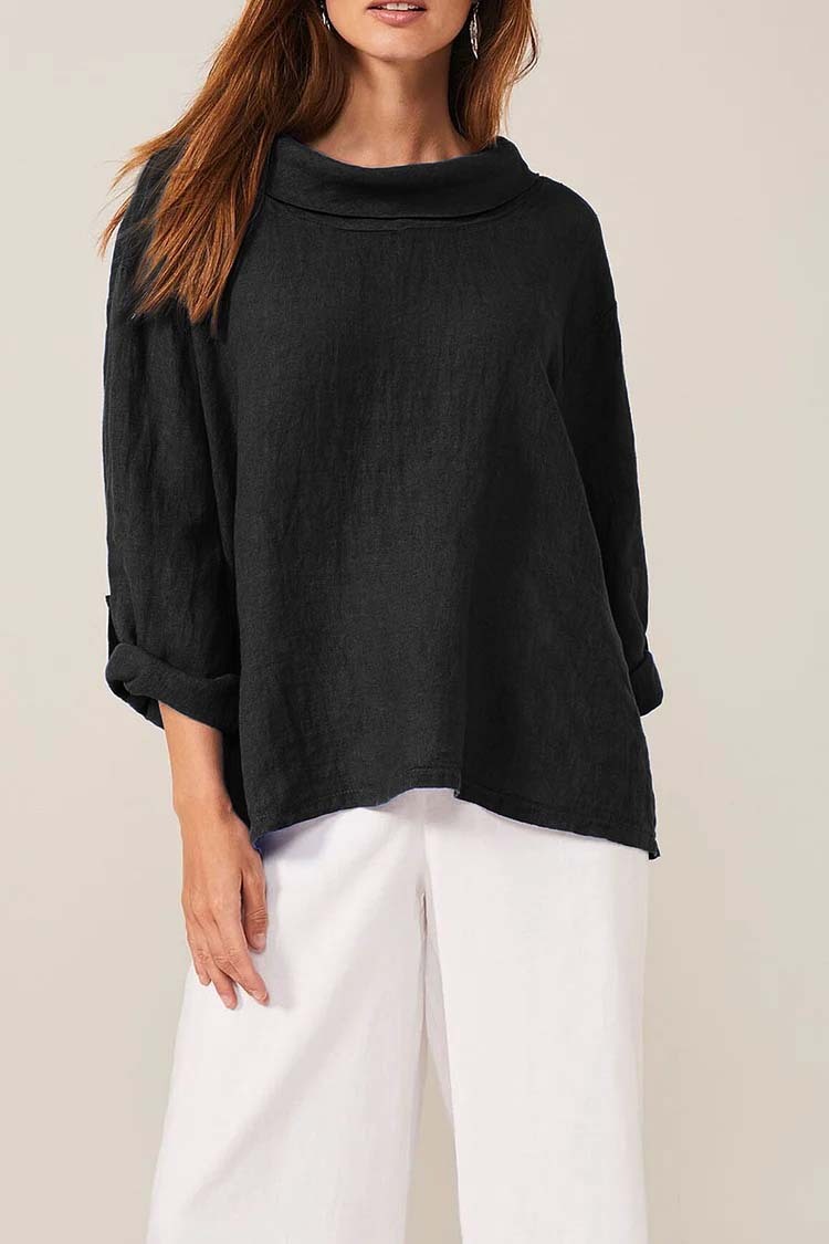 Cotton Linen, Cowl Neck, Three Quarter Fold Sleeves, Loose Fit Casual Top.