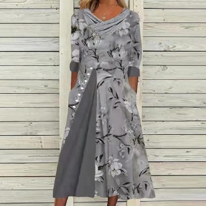 Flower Print Flat Elegant Loose Dress