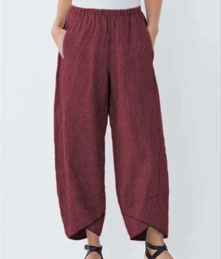 This is a casual Ninth Pants made from high quality, eco-friendly natural cotton and linen fabric.Have a soft,elasticated waistband for a great fit. With two angled side-pockets.In six great colours that will work across your wardrobe.Wearing it will not only give you a comfortable and relaxed wearing experience, but also enhance your elegance.