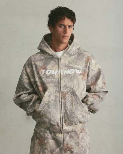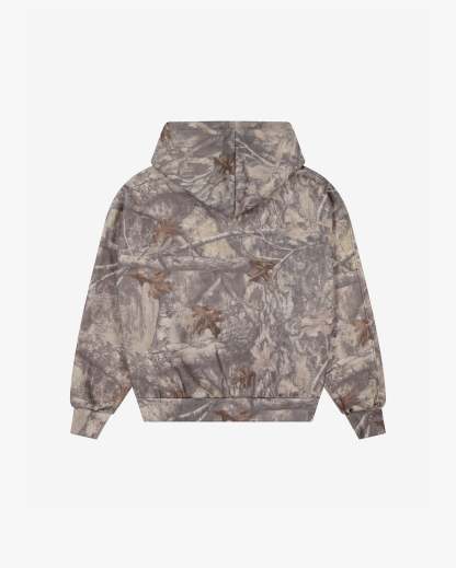 The Recon Zip-Up Hoodie features a boxy fit with an all-over forest camo print. Built for a relaxed silhouette and finished with a print detailing across the front chest.