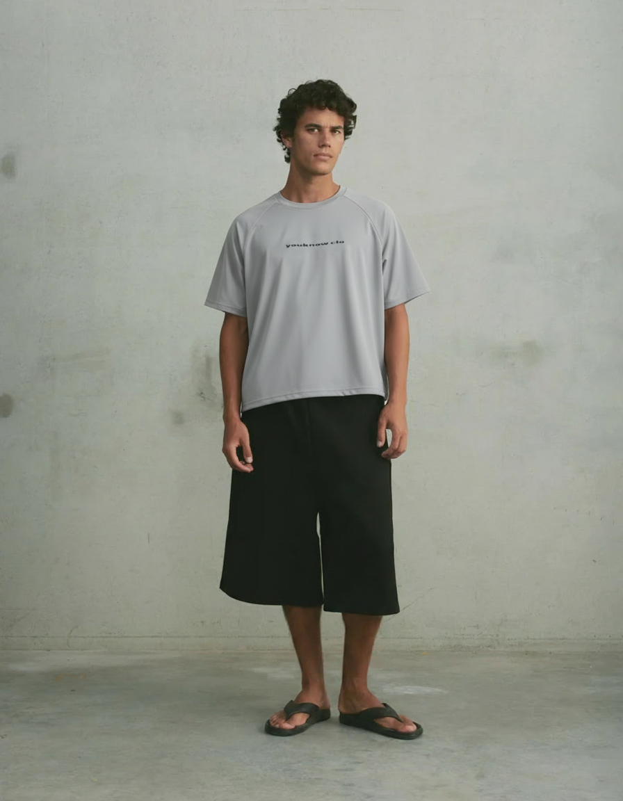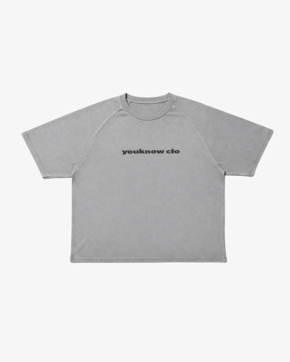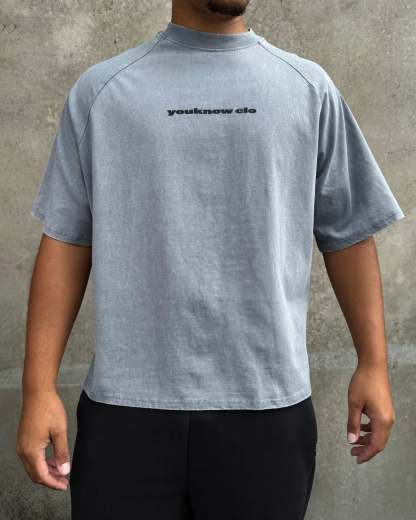The Washed Raglan Tee features a relaxed, boxy fit with raglan-style sleeves, a washed finish, a YOUKNOW. logo print on the front, and embroidered star detailing at the back neck.