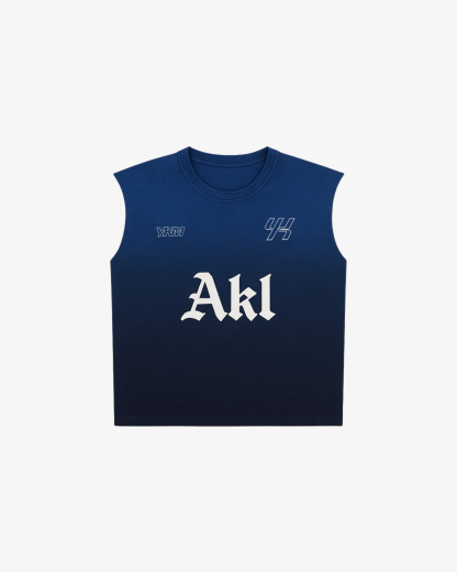- Screenprint AKL and YK graphics on front, in a blue gradient colourway